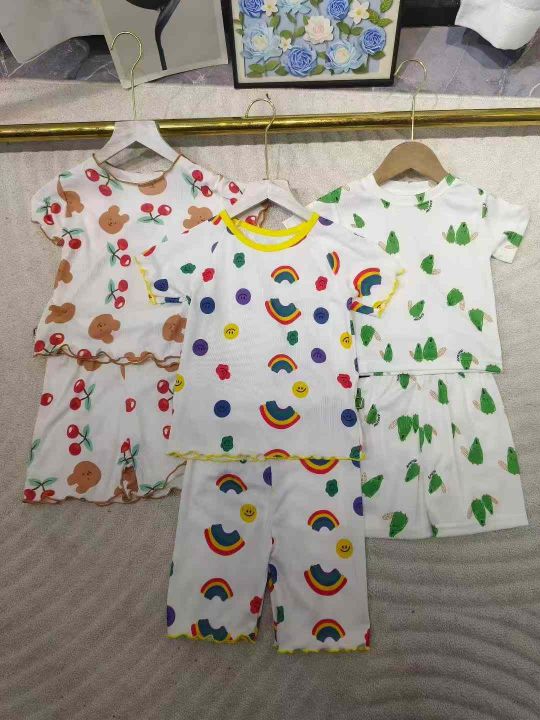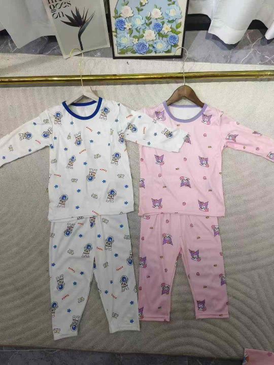 儿童冰丝透气家居服睡衣套装 数量19000套 尺码90--150 有短裤短袖套装 有长裤短袖套装 有长袖长裤套装 颜色很多logo很多 独立包装带吊牌 大货干净整洁