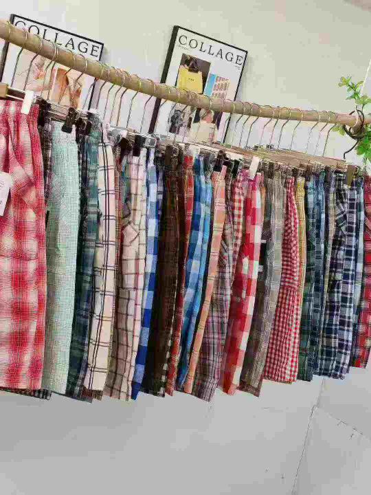 均码,数量5070条左右,纯棉面料,全部独立包装,货品非常漂亮,版型宽松,格子短裤,五分短裤,休闲短裤,基本都是双钱兜,实体店品质,多花色,分货7.8,(沙滩,居家)