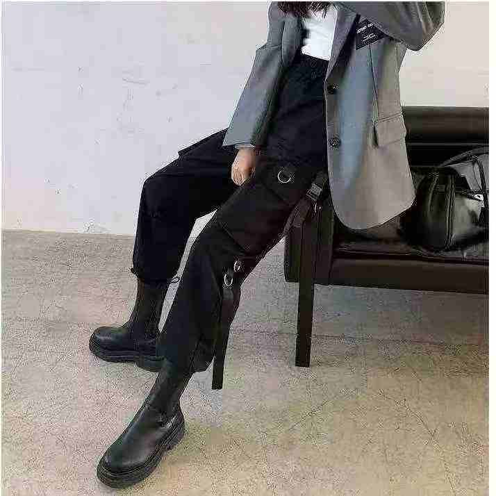 春秋新款弹力复古多袋工装松紧腰休闲裤,独立包装带吊牌,码数27-34码,100...