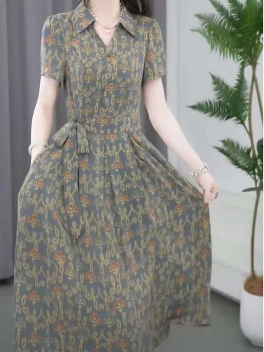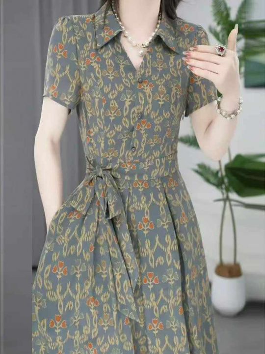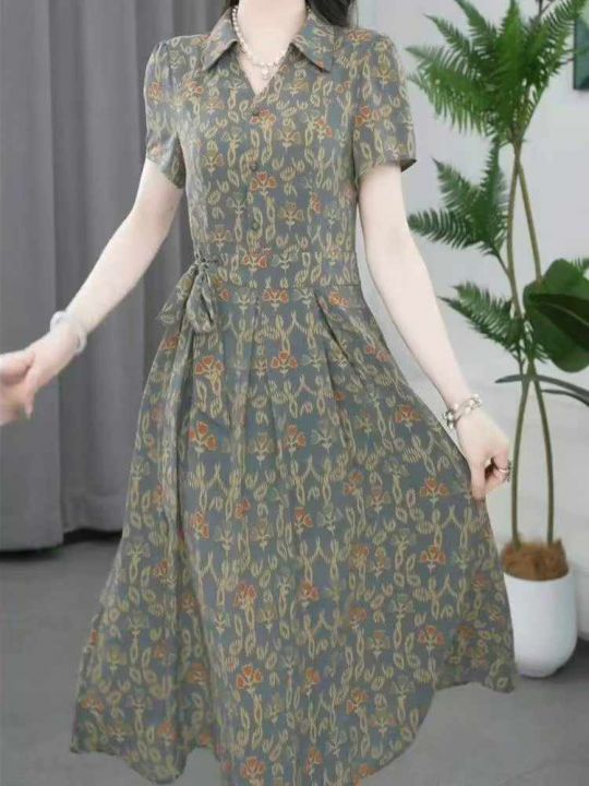 夏季新款网红爆款短袖气质减龄碎花妈妈衬衫连衣裙,独...