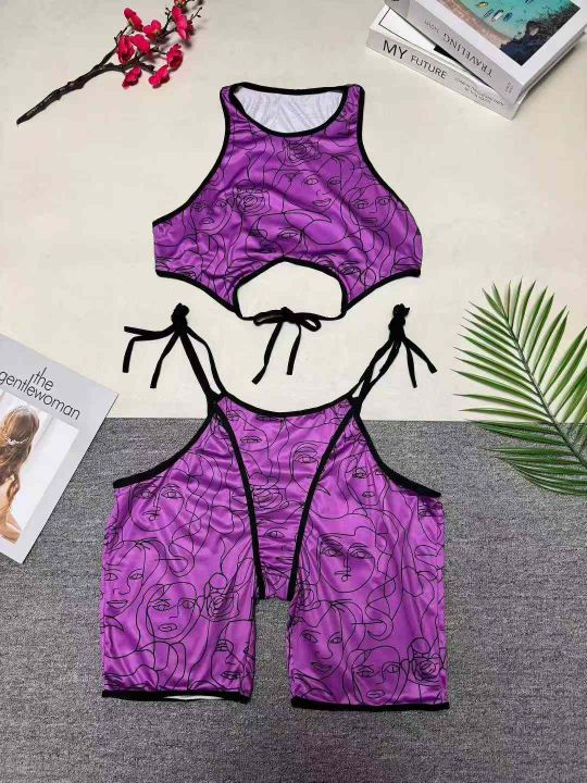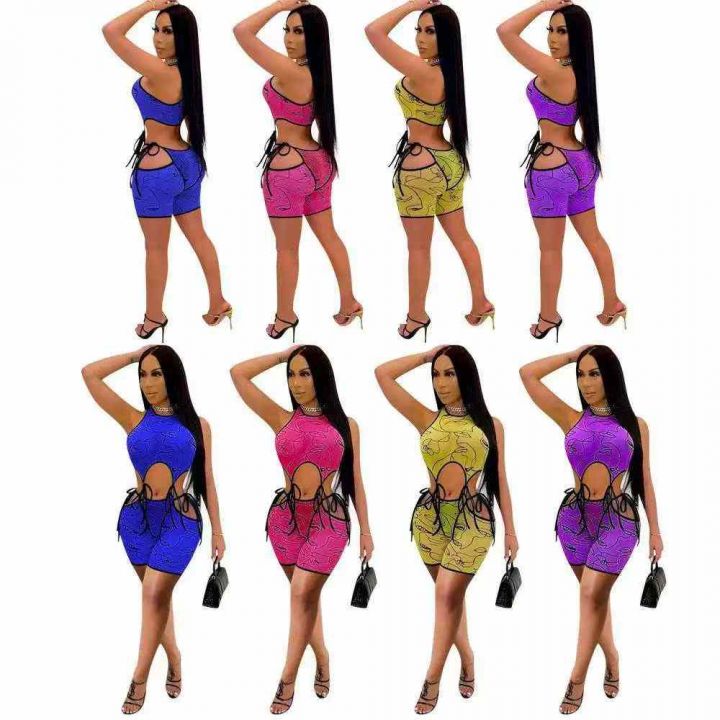 欧美女印花套装系带短裤套装休闲运动装 ,整款四色,数量:183套,码数:S-2XL,品质好,拉链式独立包装。