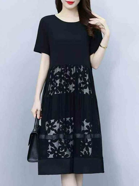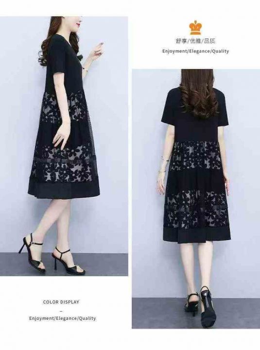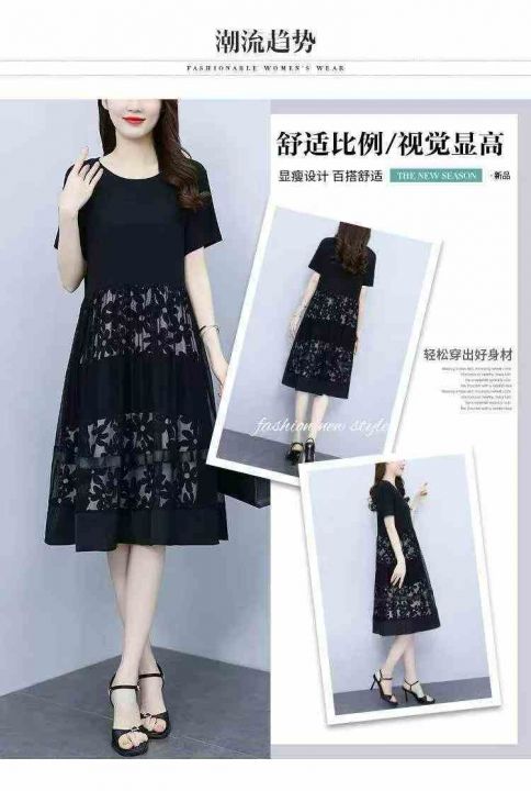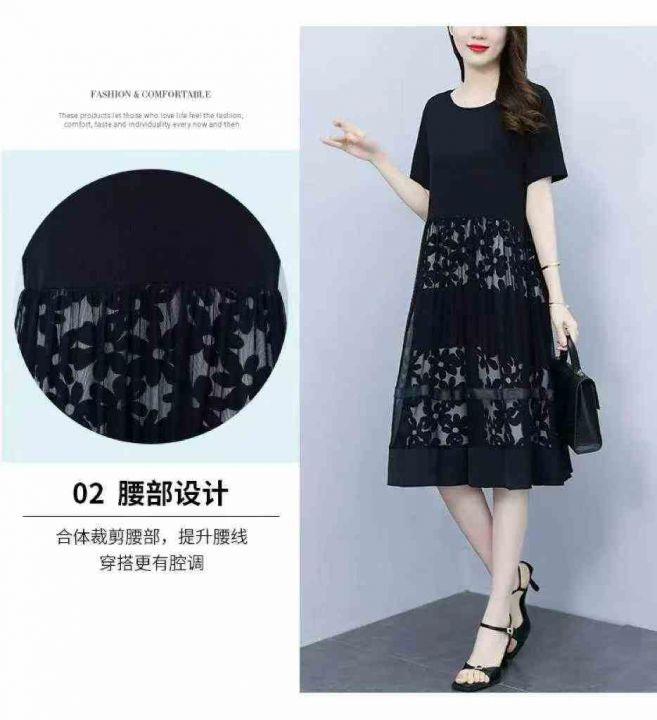 夏季新款微胖MM宽松时尚设计感拼接网纱洋气显瘦中长款连衣裙,独立包装,码数L-4XL码,320件,全清7.9元超低价秒杀!分货加一!
