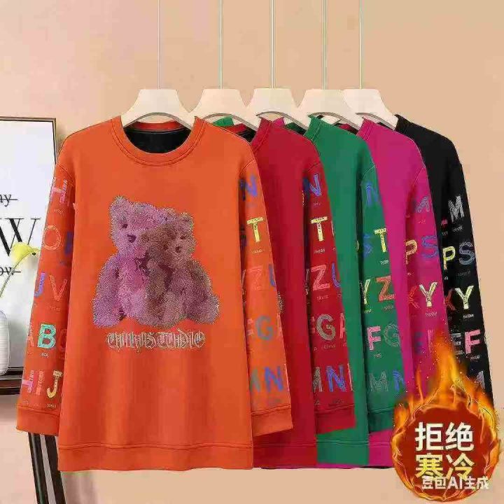 加绒加厚烫钻小熊洋气卫衣休闲卫衣,独立包装,宝宝绒,码数L-XXL(L胸围100厘米,能穿120斤内),大货黑色为主,数量1633件,分货加1,货号130#64