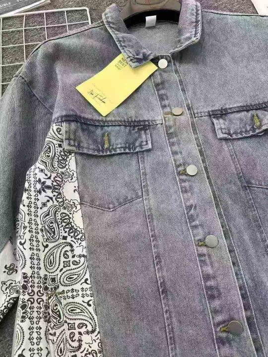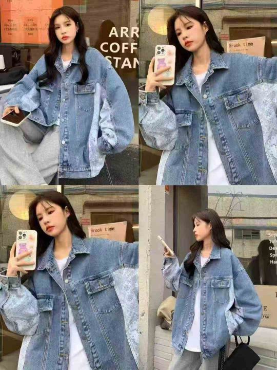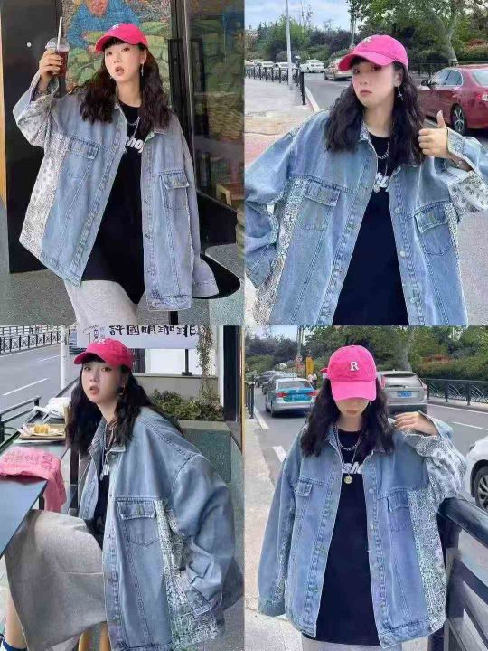 ☕️男女同款牛仔外套1096件全清20元,分货21元,宽松版码数S到XL,精品独立包装,腰果花复古拼接牛仔外套女设计感小众韩版宽松春秋夹克潮