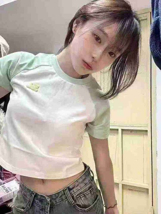 [月亮]:美式辣妹插肩纯棉短袖T恤