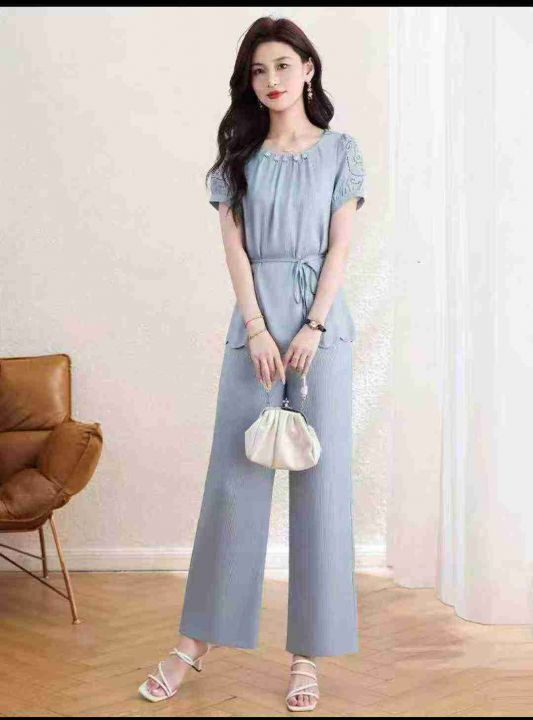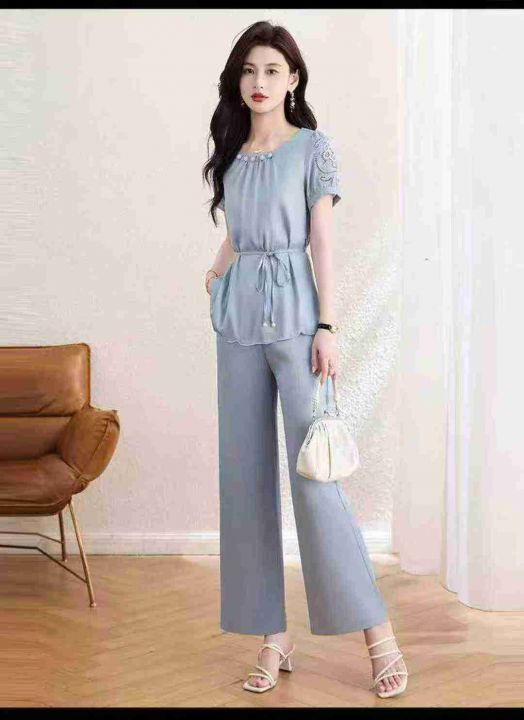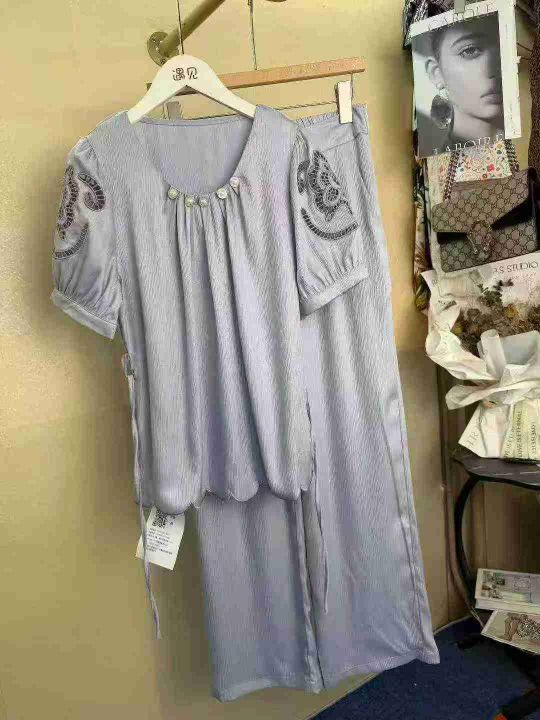 女士冰丝缎面短袖套装,单款单色 质量好可进实体,数...