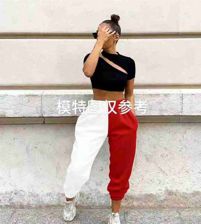 欧美潮款撞色高腰休闲裤卫裤,数量240条左右,码数S-2XL,品质好,拉链式独立包装。