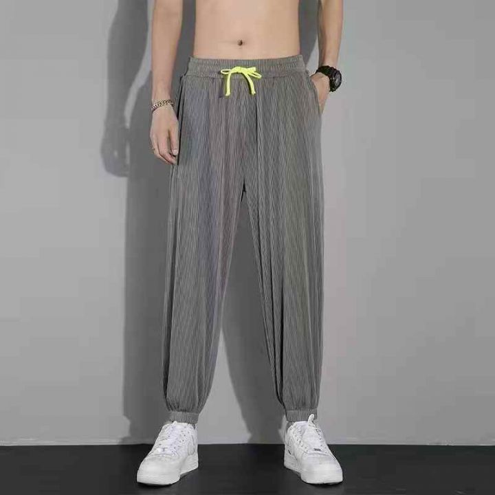 全清价6.56538条\'裤子夏季男休闲薄款韩版ins潮牌冰丝条纹运动大码弹力宽松...