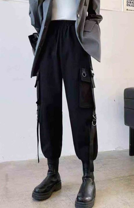 春秋新款弹力复古多袋工装松紧腰休闲裤,独立包装带吊...