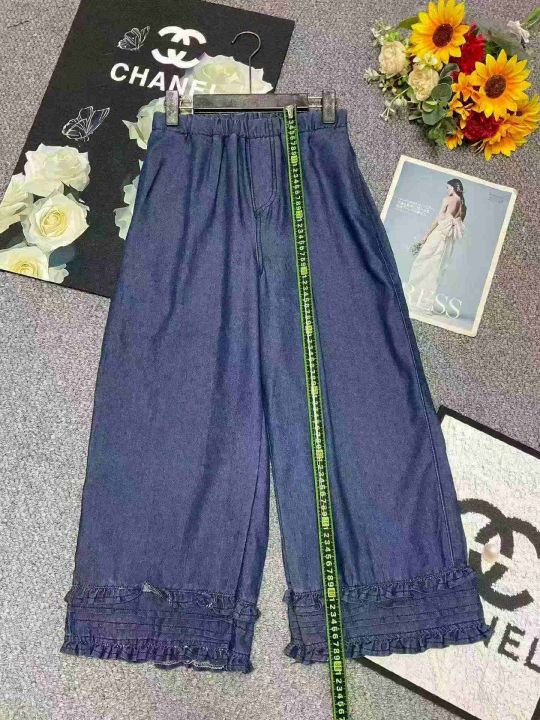 夏季新款花边拼接纯色减龄显瘦直筒阔腿牛仔裤,独立包装带吊牌,码数M-3XL码,150件,全清8.8元超低价秒杀!