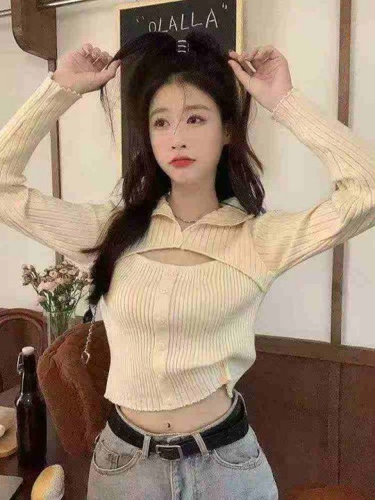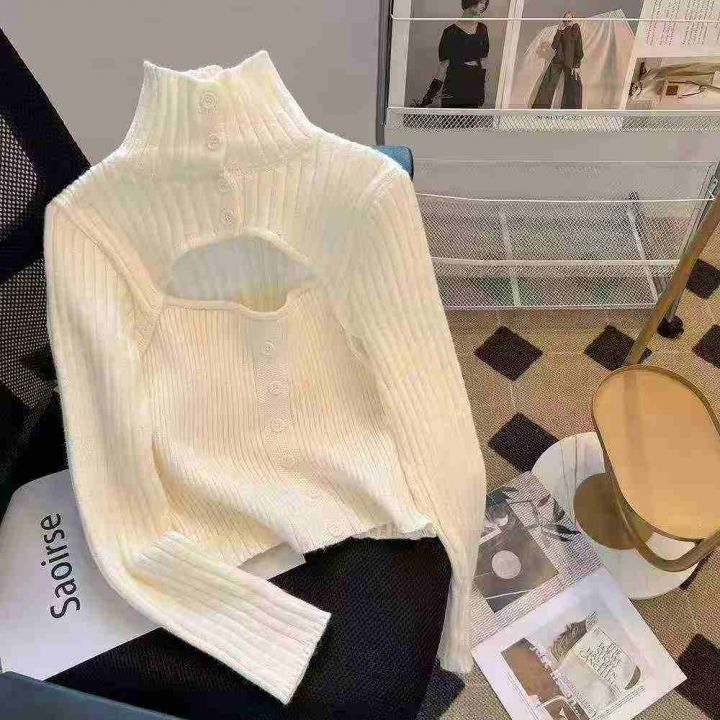 捡漏款,春秋新款网红纯欲风心机镂空辣妹高领套头毛衣...