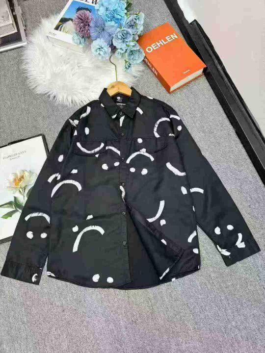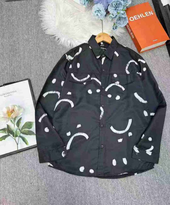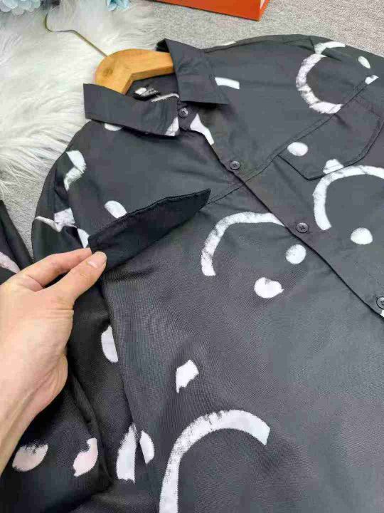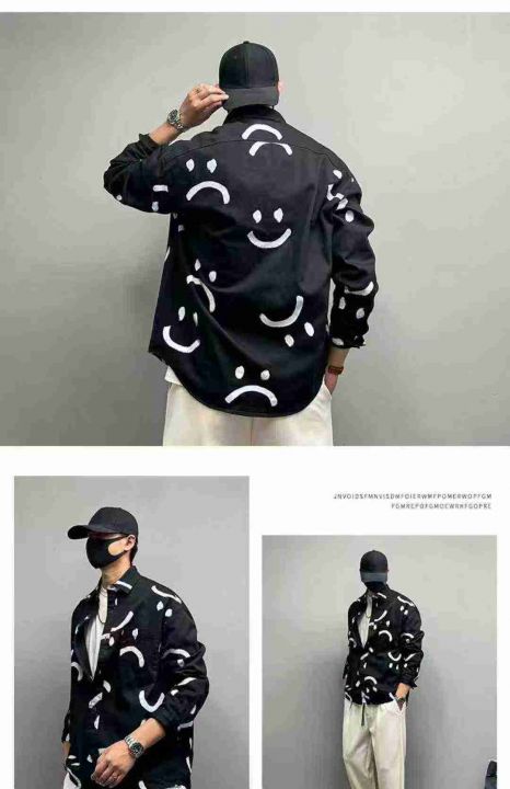 秋季新款笑脸印花休闲长袖衬衫男士时尚百搭宽松方领休闲衬衣 381件 码数:M-3XL (1点到5点)独立包装,模特图只供参考,分货➕1 (货号305#2)