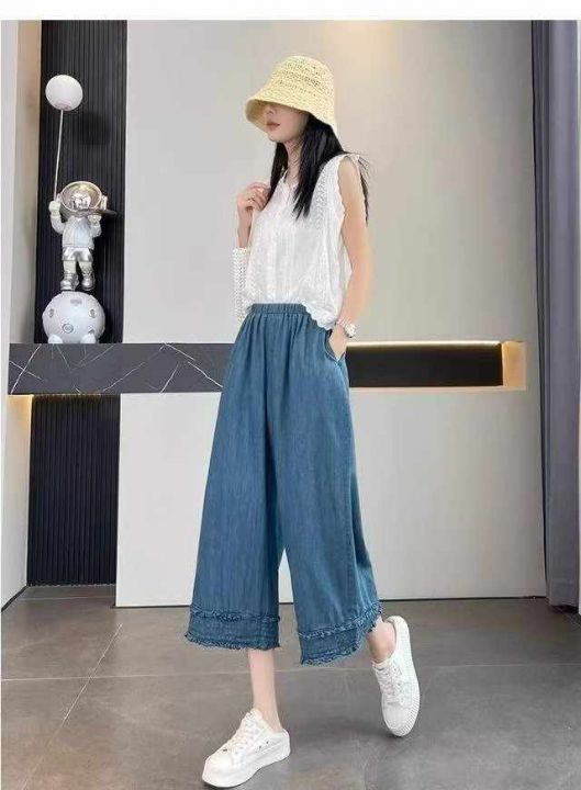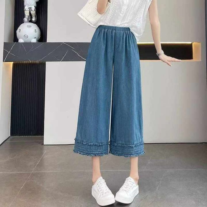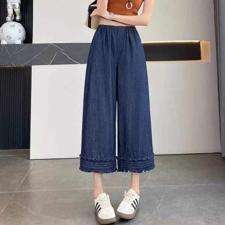 夏季新款花边拼接纯色减龄显瘦直筒阔腿牛仔裤,独立包装带吊牌,码数M-3XL码,150件,全清8.8元超低价秒杀!