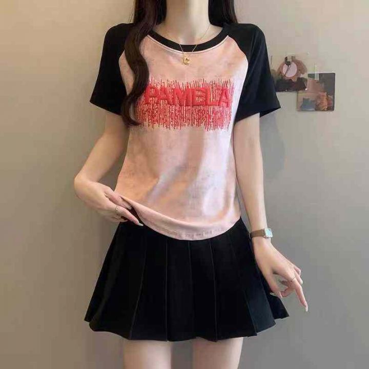 ☕️大码拼接撞色字母印花短袖t恤女夏季胖mm显瘦遮肚子别致独特上衣辣妹T 6...