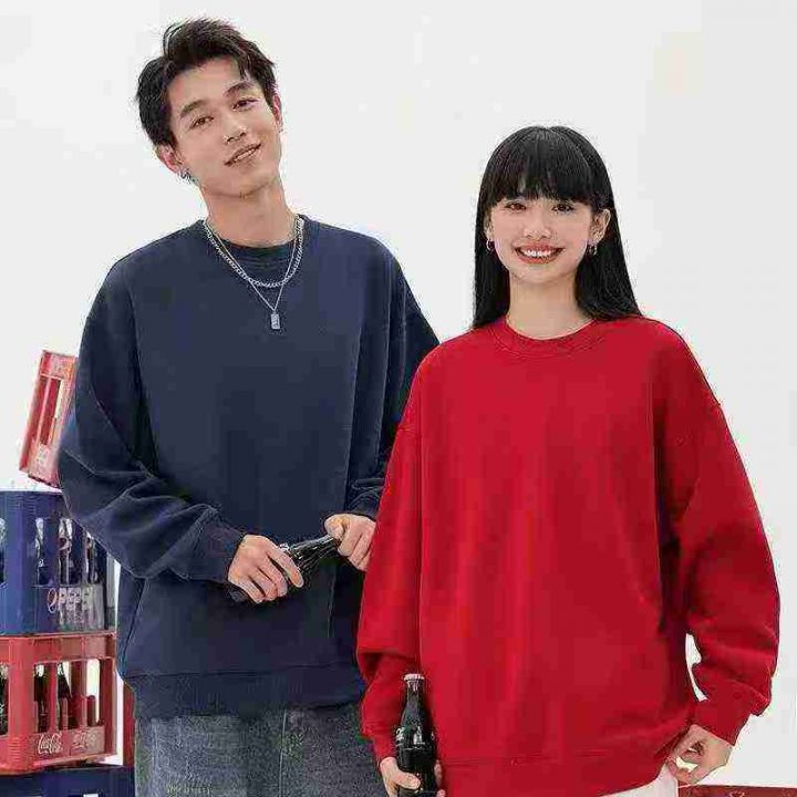 圆领加绒卫衣秋季新款潮流宽松休闲百搭上衣男女款情侣纯色日系复古,(大部...