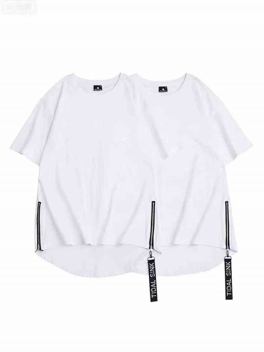 整款纯色短袖男女同款侧边拉链圆弧下摆嘻哈潮流风格296件 独立包装S-5XL全...
