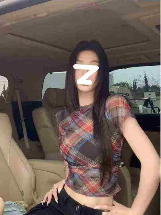 美式复古格子网纱短袖86件6.9,面料柔软,有弹力,褶皱收腰设计,码数1-3码...