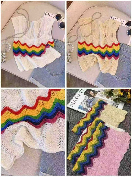 夏季新款彩虹镂空网红设计感短款冰丝宽松针织吊带背心,独立包装,均码面料软糯舒适有弹力,510件,全清4.9元超低价秒杀!分货加一!