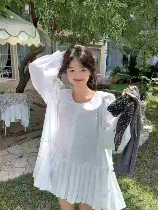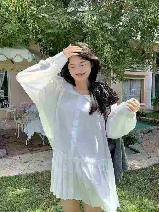 韩版甜美温柔减龄娃娃领长袖衬衣,[爱心]60件左右,码数S-XL,穿70-130斤,[666]工厂原包装瑕疵,(模特图仅供参考)