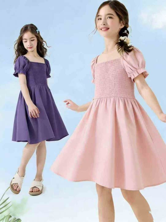 全清价6.9元夏季方领打揽简约A字纯色童装连衣裙 ,数量:754条,码数:6Y-14...