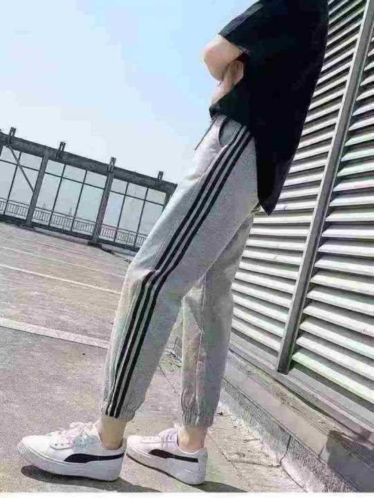 全清7.860件三条杠束脚卫裤男女春夏新款宽松运动裤直筒休闲哈伦裤 单款两色...