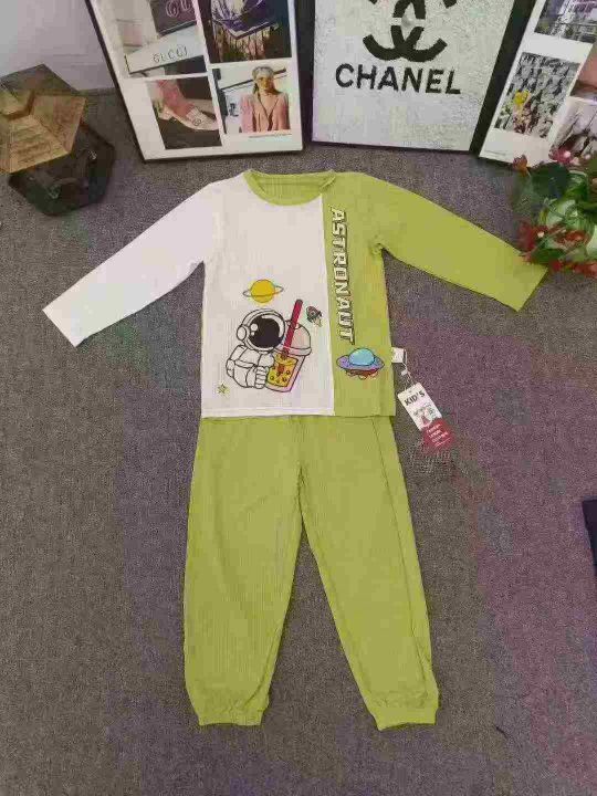 品牌童装长袖家居服套装,数量500套左右,尺码90--150,大码多,整款单色两个品牌(史努比、baby),独立包装带吊牌,货品整洁质佳