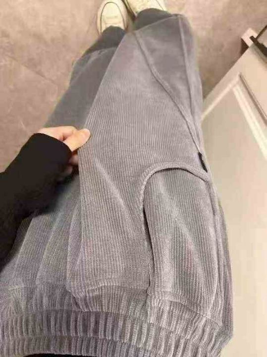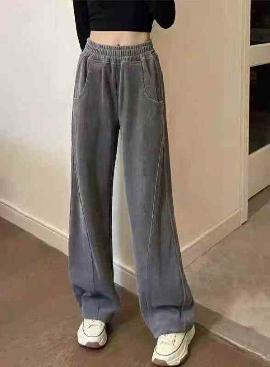 美式复古运动裤女高腰显瘦窄版阔腿裤卫裤休闲裤