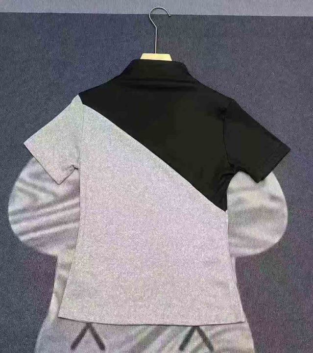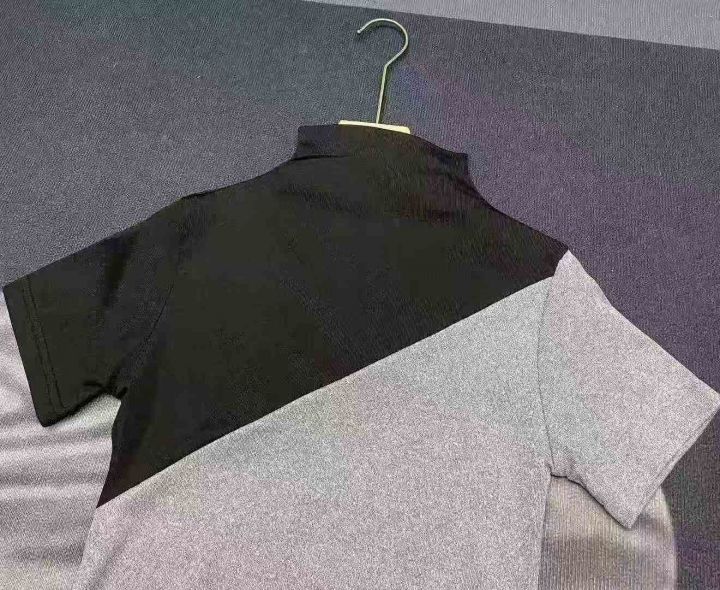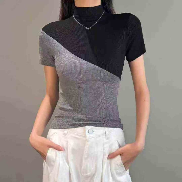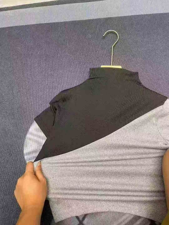 天猫在售款188件左右高品质夏季半高领拼色螺纹短袖T恤,单款单色,高弹力,码数S-XL,独立包装带吊牌