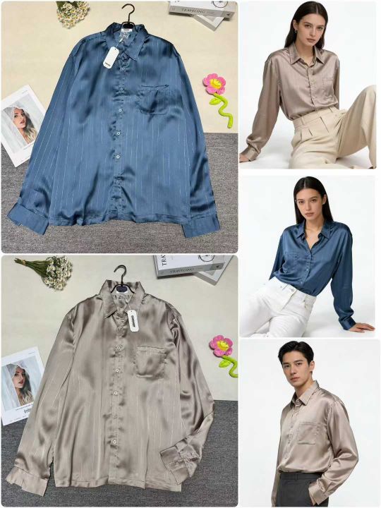 外贸原单男女条纹仿真丝缎面长袖职业休闲衬衣,大版型,特高货,可抽真空拉...