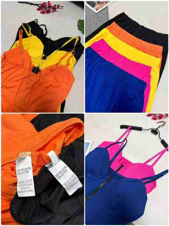 欧美性感抹胸吊带+短裤两件套 ,整款多色,数量260套左右,码数S-2XL,品质好,拉链式独立包装。