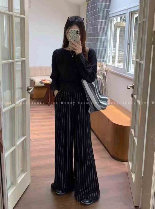82条高品质慵懒风条纹直筒裤女高腰显瘦气质百搭阔腿裤,质量做工好!尺码M-...