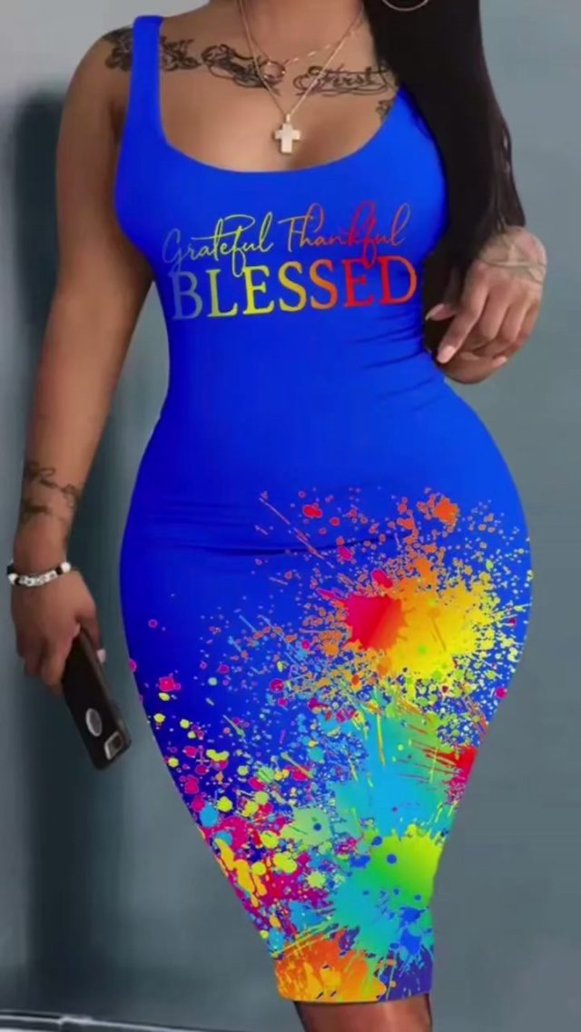 6.5清:跨境亚马逊外贸女装印花无袖圆领修身背心连衣裙一批:小整款花型图...
