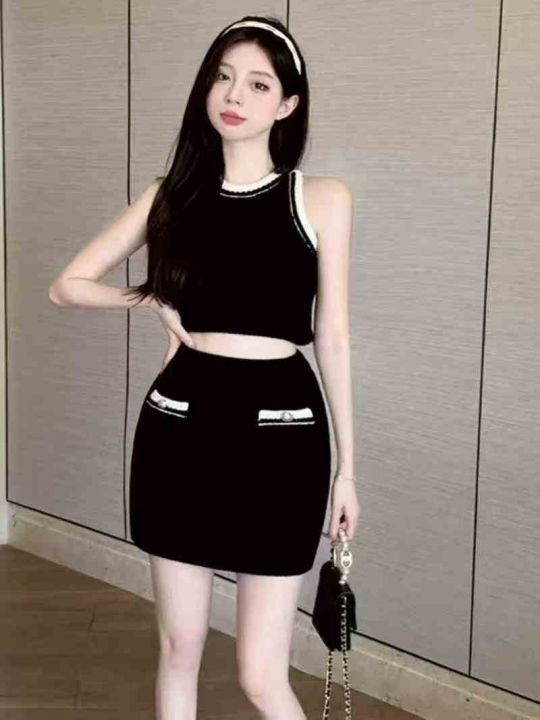 54套靓妹款冰丝针织半身裙小香风套装女气质修身套装裙两件套,质量超好,两...