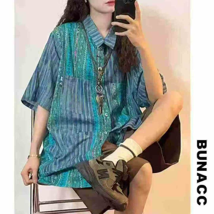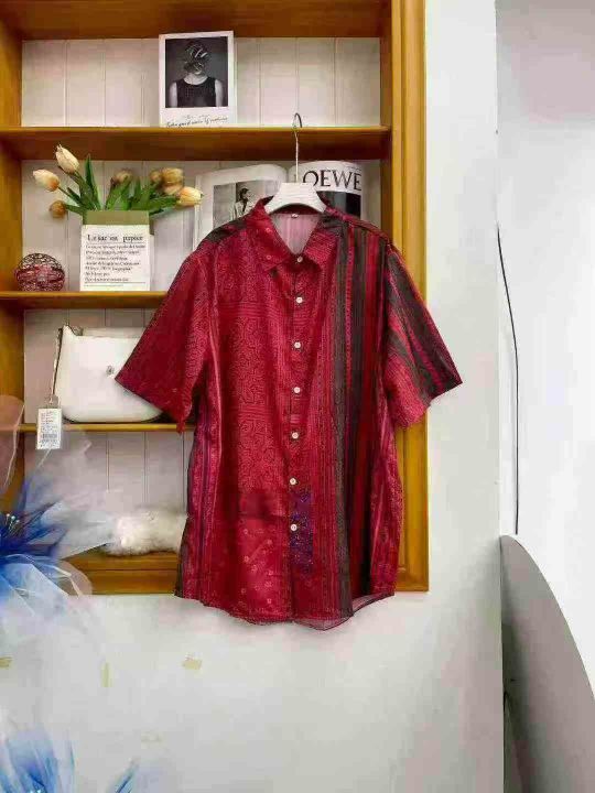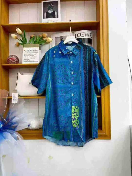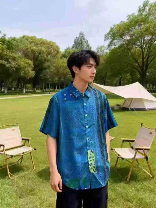 ① 夏季新款美式复古男女同款拼色设计短袖衬衣!版型...