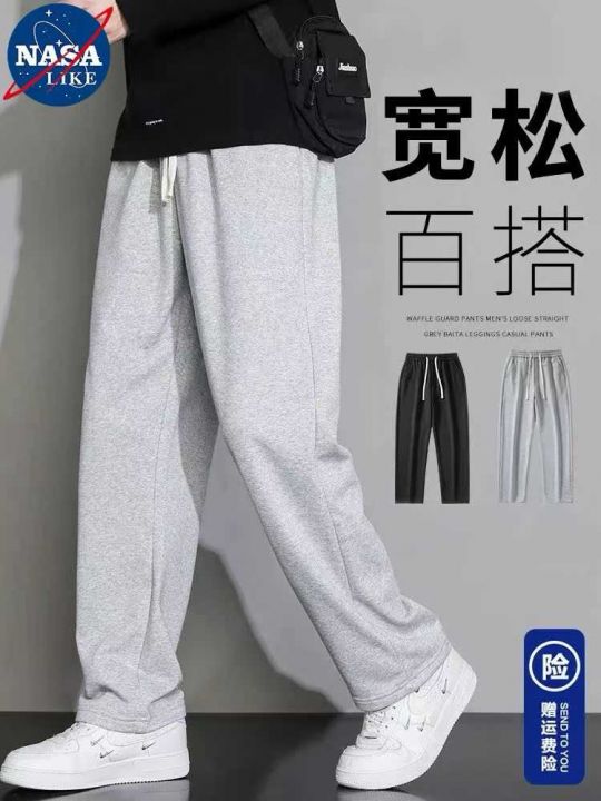 ️日系运动卫裤宽松直筒重磅阔腿休闲抽绳华棉潮牌男裤...