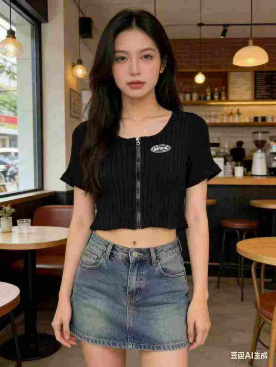 辣妹靓妹露脐针织短袖开衫,竖坑条面料,胸口有小标,有拉链,总数量3778件,单款多色,均码,独立包装,分货➕1元/件