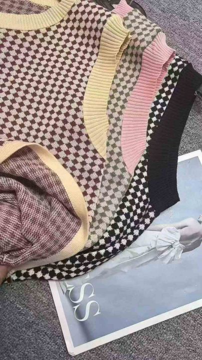 秋季新款韩版复古撞色提花宽松叠穿针织毛衣马甲背心,独立包装,均码宽松版,面料软糯舒适,单款3色,540件左右,全清6.9元超低价秒杀!分货加一!