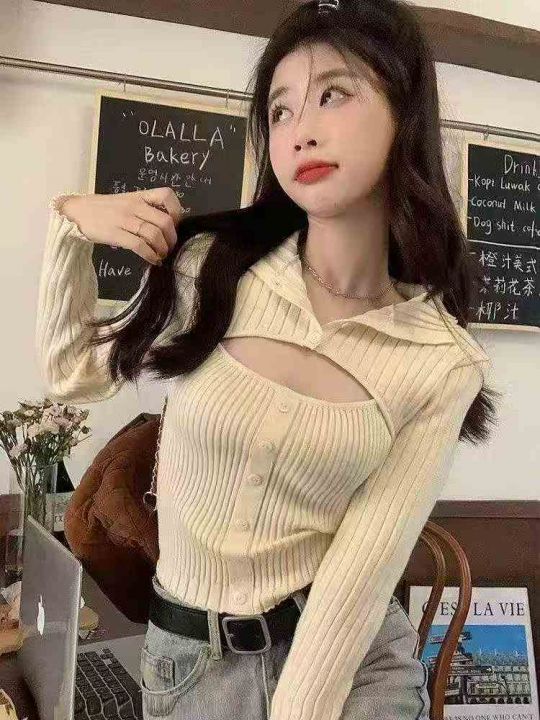 捡漏款,春秋新款网红纯欲风心机镂空辣妹高领套头毛衣...