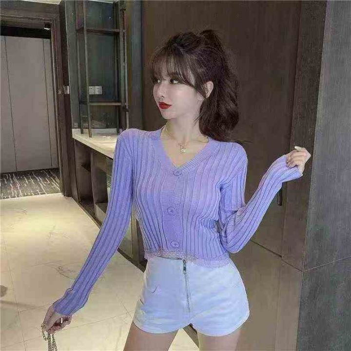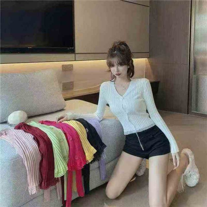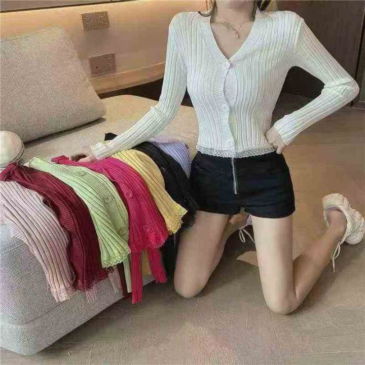 韩版2025chic长袖针织开衫女装外套毛衣春秋新款修身蕾丝边开衫,独立包装,均码,950件左右,清8.5,分➕1