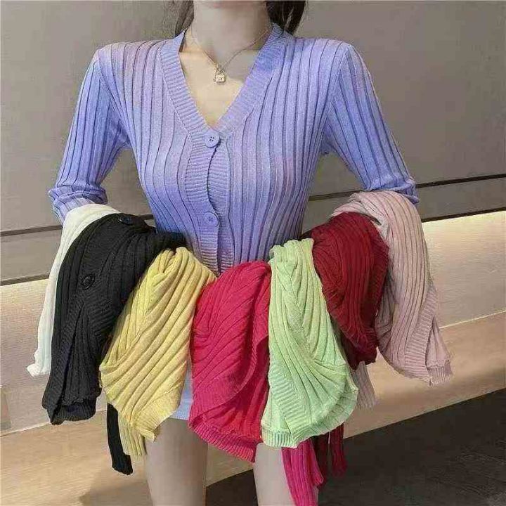 韩版2025chic长袖针织开衫女装外套毛衣春秋新款修身蕾...