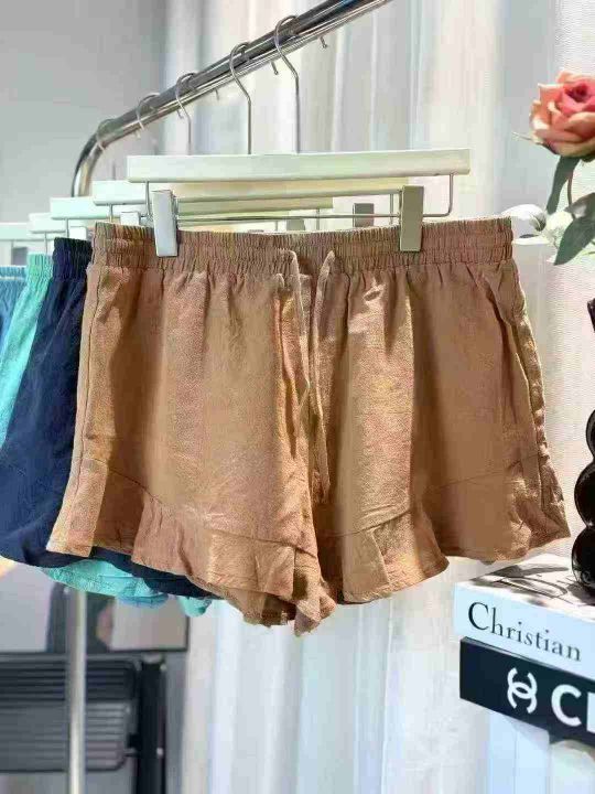 830条高品质棉麻荷叶边松紧腰抽绳设计短裤,宽松休闲...