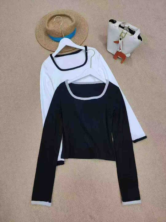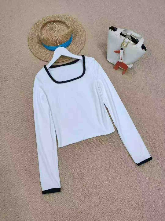[月亮]:纯欲短款拼接方领辣妹德绒长袖上衣