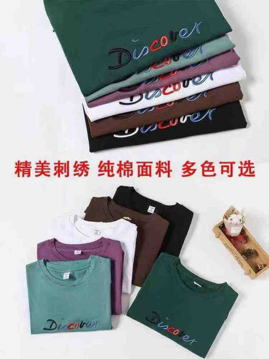 600件纯棉长袖,短袖t恤女夏季2026新款宽松大码字母刺绣显瘦正肩纯色潮上衣,整款多个颜色,独立卡纸原包装带吊牌,码数S一3XL,全清10.8分货加1
