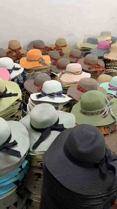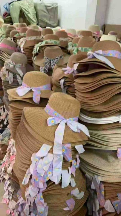 20000顶新款沙滩度假碎花蝴蝶结帽子海边防晒太阳帽夏季法式平顶草帽礼帽 4.99清 分货加0.5