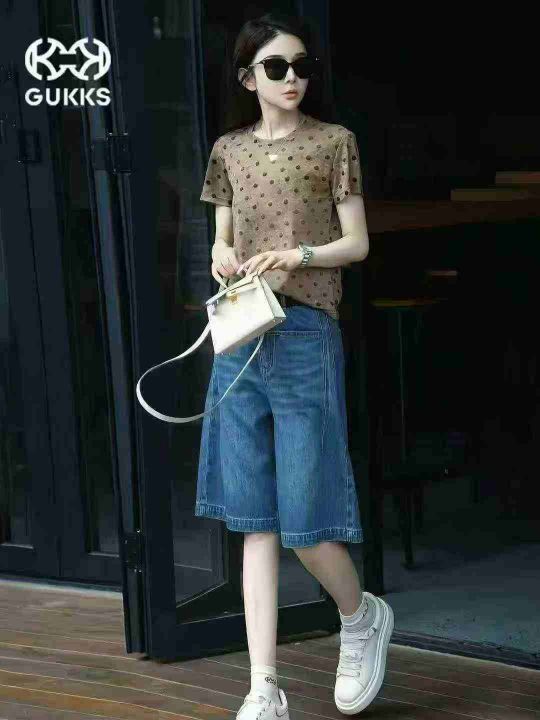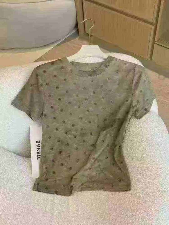 重工晕染波点圆领短袖T恤女夏季设计感显瘦遮肉气质上...
