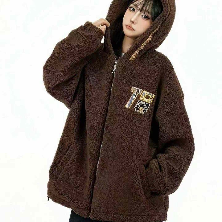 秋冬新款加绒(一体绒)可爱卡通软妹新款宽松百搭保暖羊羔毛连帽拉链外套,独立包装,码数S--XL码,140件左右,全清18.8元超低价秒杀!分货加一!