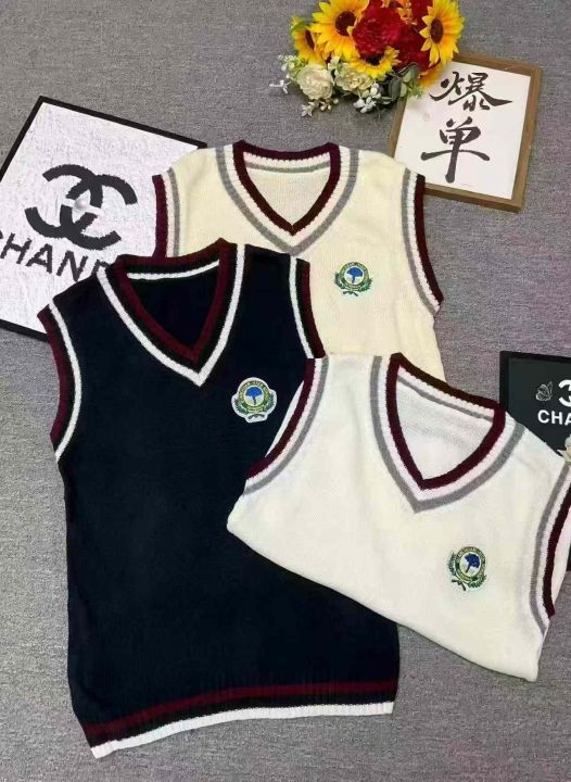 春秋新款韩系宽松百搭学院风刺绣小标针织毛衣马甲,独...