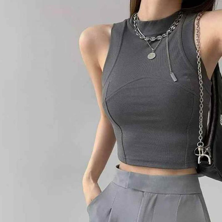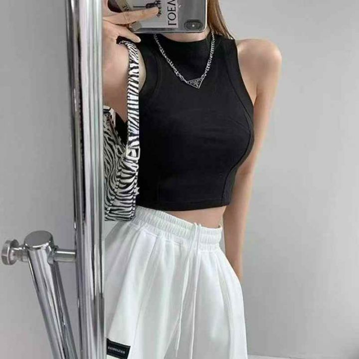 夏季新款美式辣妹冰丝弹力修身显瘦纯色工字背心,独立...
