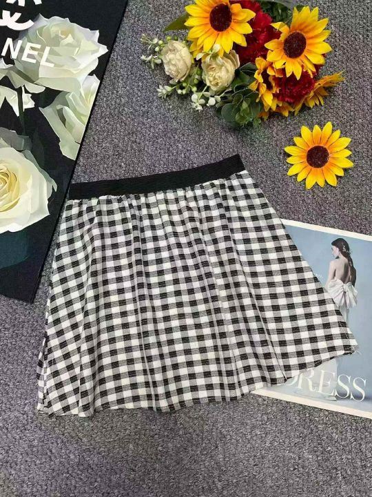 网红爆款格子打底神器内搭百搭下摆叠穿遮屁小屁帘短裙...