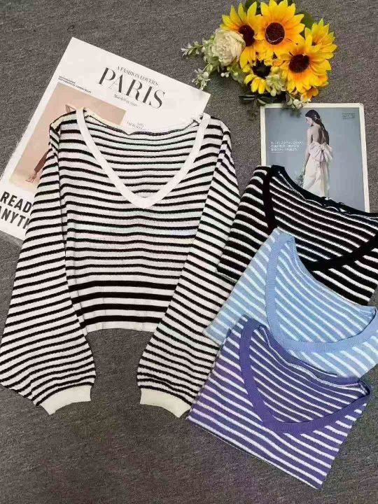 秋季新品撞色条纹宽松慵懒风短款针织V领套头毛衣,独立包装,均码面料柔软舒适弹力大,130件,全清5.9元超低价秒杀!